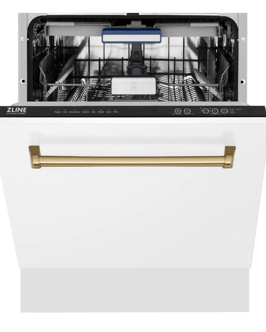 DWMTZ-SN-24-G ZLINE AUTOGRAPH EDITION 24" 3RD RACK TOP TOUCH CONTROL TALL TUB DISHWASHER IN DURASNOW STAINLESS STEEL WITH GOLD ACCENT HANDLE, 45DBA (DWMTZ-SN-24)
