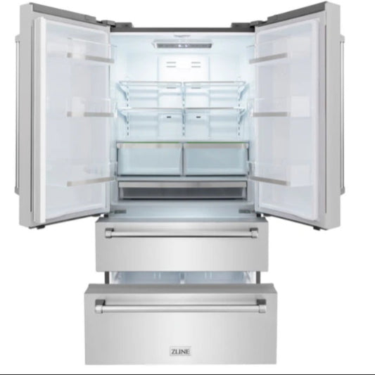 ZLINE 36" 22.5 CU. FT FREESTANDING FRENCH DOOR REFRIGERATOR WITH ICE MAKER IN FINGERPRINT RESISTANT STAINLESS STEEL (RFM-36)