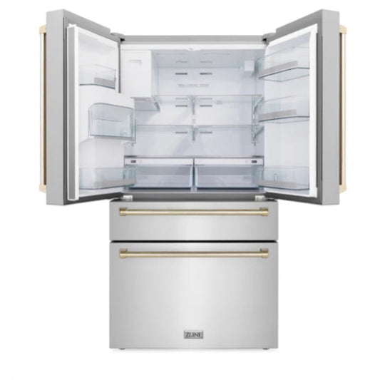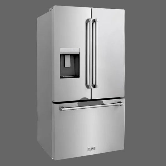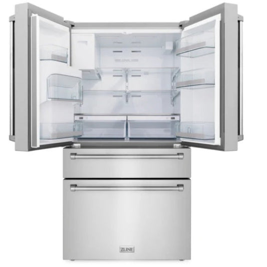 ZLINE 36" 21.6 CU. FT. 4-DOOR FRENCH DOOR REFRIGERATOR WITH WATER AND ICE DISPENSER AND WATER FILTER IN FINGERPRINT RESISTANT STAINLESS STEEL (RFM-W-WF-36)