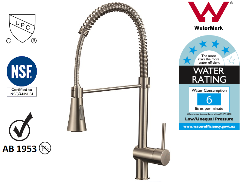 Emperor E01H28-BN Single Handle Solid Brass Spring Kitchen Faucet, Brushed Nickel