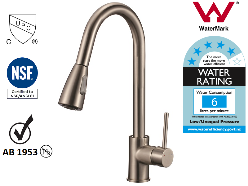 Emperor E11H28-BN Single Handle Pull-Down Kitchen Faucet, Brushed Nickel.
