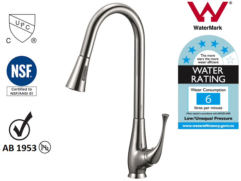 5. Swiveling Spout ,Pull Out Sprayer,Dual sprayer control (stream or spray).
