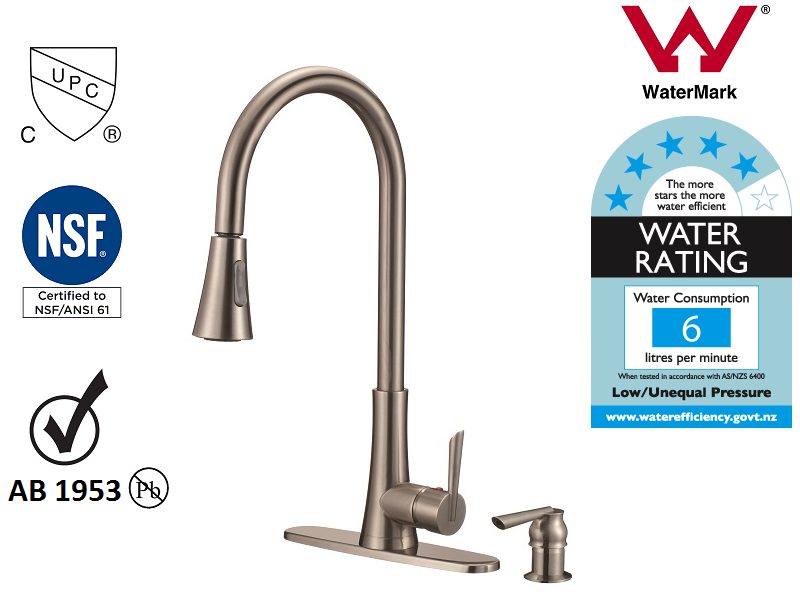5. Swiveling Spout ,Pull Out Sprayer,Dual sprayer control (stream or spray).