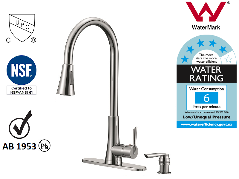 4. Surface finish:Polished Chrome. 5. Swiveling Spout ,Pull Out Sprayer,Dual sprayer control (stream or spray).