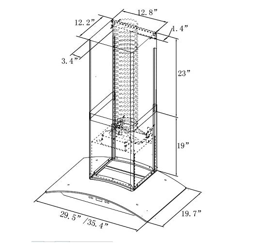 - DUCT SIZE: 6 inch round duct vent on top