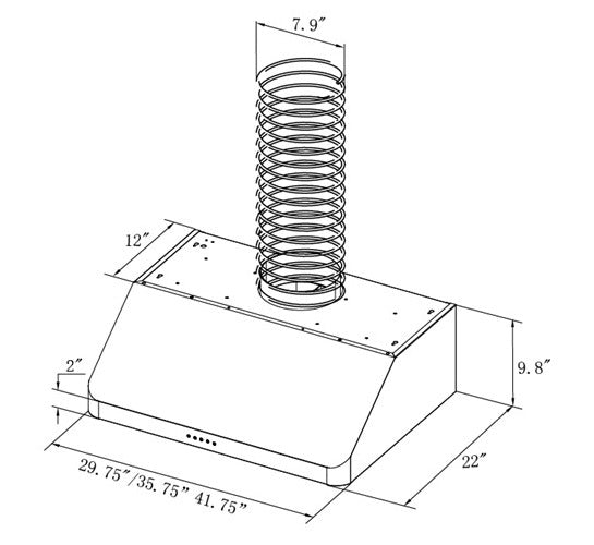 - DUCT SIZE: 8 inch round duct vent on top