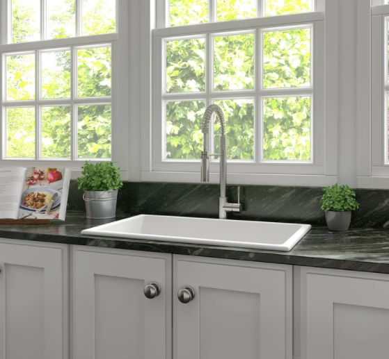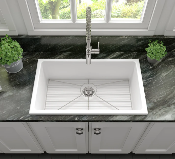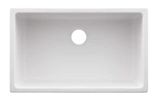 ZLINE 30" ROME DUAL MOUNT SINGLE BOWL FIRECLAY KITCHEN SINK WHITE GLOSS WITH BOTTOM GRID (FRC5124-WH-30)